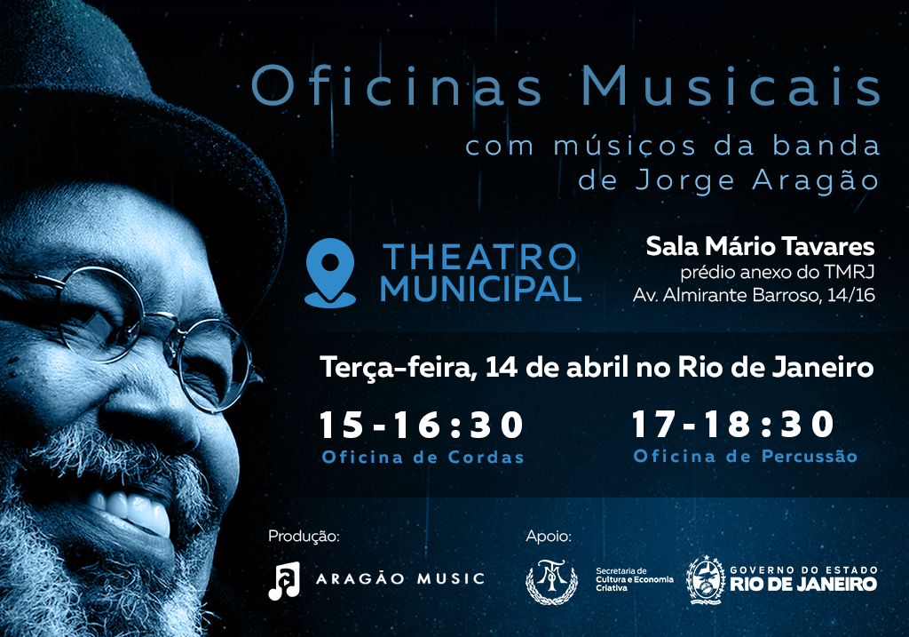 No dia 14 de Abril, o grupo Aragão Music irá realizar duas oficinas musicais na Sala Mário Tavares, voltadas ao grande público e profissionais da área. Das 15h às 16h30, acontece uma oficina de cordas ministrada por Jerominho Fernandes, Leandro Saramago e Vitor de Souza, e a oficina de percussão acontece das 17h até as 18h30, realizada por Junior Moraes, Diego Delavega, Neném Chama e Leonardo Balanço.