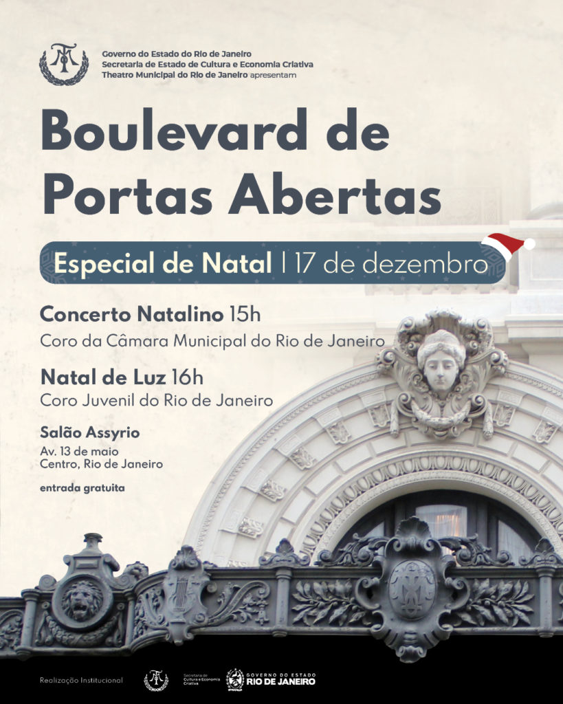 Para celebrar as festas de fim de ano, o Boulevard do Theatro Municipal do Rio de Janeiro recebe, no dia 17 de dezembro (quarta-feira, às 17h), o Coro Juvenil do Rio de Janeiro para o concerto gratuito Natal de Luz.