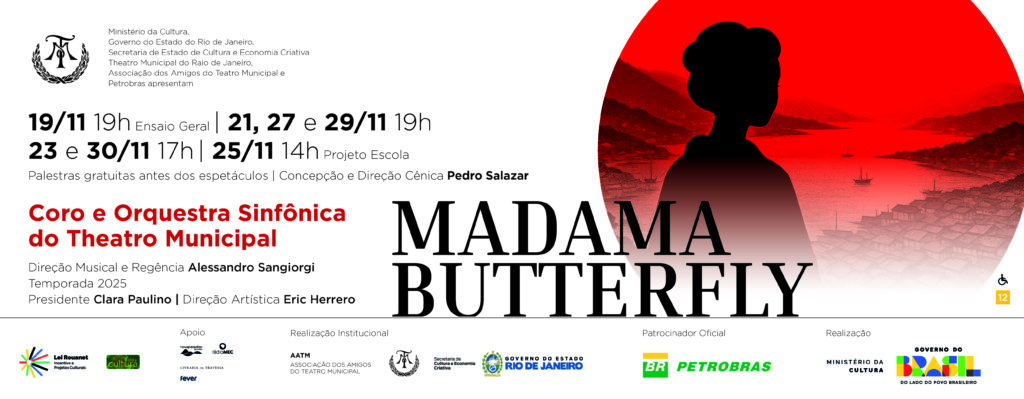 Após onze anos de ausência, uma das óperas mais comoventes e aclamadas de todos os tempos retorna ao palco do Theatro Municipal do Rio de Janeiro. A partir do dia 21 de novembro, com o Patrocínio Oficial Petrobras, o público será transportado ao universo trágico e apaixonante de Madama Butterfly, de Giacomo Puccini — uma história de amor, honra e destino que atravessa gerações. Com Coro e Orquestra Sinfônica do Theatro Municipal e uma ambientação inspirada na década de 1950, essa nova produção promete uma experiência inesquecível, na qual cada nota e cada gesto traduzem a força do drama e da beleza da música de Puccini. No elenco, grandes vozes como Eiko Senda, Daniela Tabernig, Matheus Pompeu, Miguel Geraldi, Inacio de Nonno e Santiago Villalba. Com cenografia de Renato Theobaldo, figurinos de Marcelo Marques e iluminação de Ángel Ancona, a ópera conta com a concepção e direção cênica de Pedro Salazar e a direção musical e regência de Alessandro Sangiorgi. As apresentações acontecem também nos dias 23, 27, 29 e 30 de novembro, ficando o dia 25 reservado para o Projeto Escola.